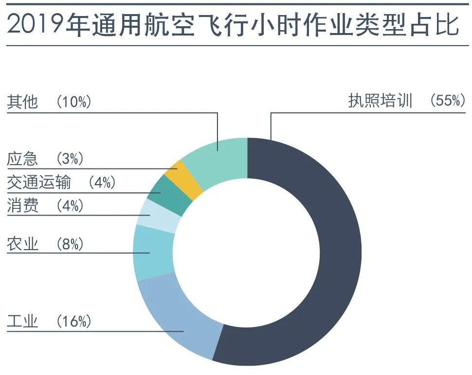 中国的通用航空企业数量的增长态势与机队增长基本保持一致。截至2020年8月,中国现有实际运营中的通航企业443家,受到新冠疫情的影响,相比2019年底增长仅17家。2018年为历年中增速最快的一年,相比上一年增加100家,增幅达37%。但在随后的2019年和2020年,增速明显放缓,侧面反映出现有市场需求接近饱和,市场竞争加剧,制约通用航空业发展的关键问题仍然存在。通用航空飞行作业小时方面,2019年相比上年增长14%,首次突破一百万小时大关。而2020年由于新冠疫情的关系,第一季度通用航空作业受到了很大的影响,但随着第二季度疫情得到基本控制,通航飞行作业基本恢复正常,并在三季度实现了对上年同期水平的反超。预计2020年全年飞行小时数较2019年会稍有回落,但仍将高于2018年的水平。各通用航空飞行作业类型中,执照培训依旧占到了55%半数以上,其次依次为工业、农业、消费、交通运输和应急等。在当前工业和农业领域无人机有着逐步取代传统固定翼和直升机的趋势,但在通航消费(空中游览、跳伞飞行和个人娱乐飞行)、交通运输(包机和短途运输)和应急领域,仍然有着巨大的市场潜力。