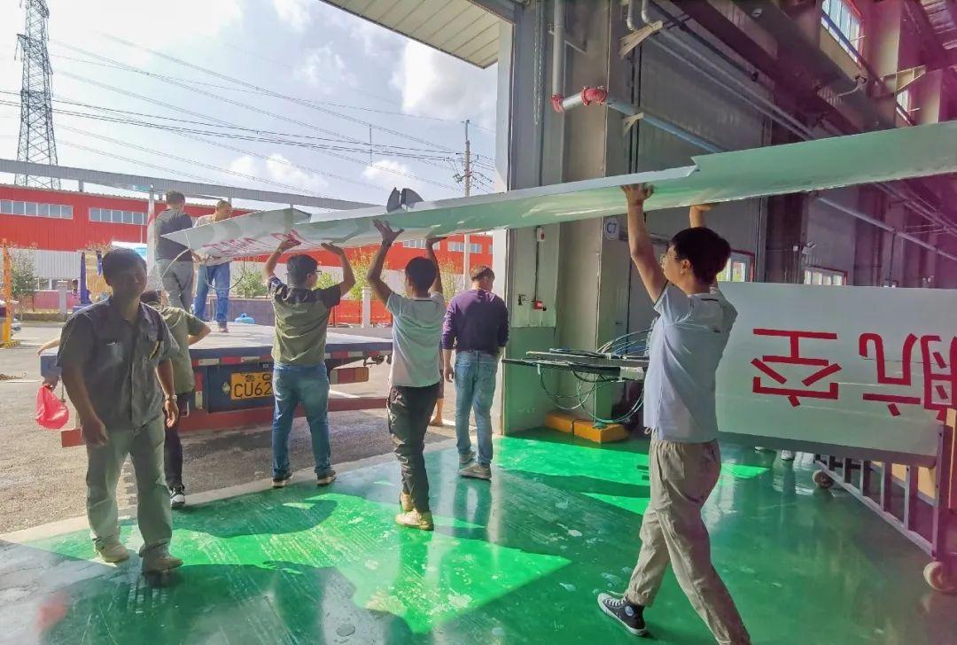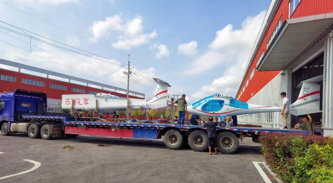 9月11日上午,天气晴朗舒适,一连多日的阴雨天终于短暂告别沈阳。锐翔通飞的工人们一大早就在机库大厅里忙碌起来。两架由山东龙飞通用航空有限公司订购的新能源静展机即将装车运往山东省临沂市。大家齐心协力将17c吃瓜网 机身和机翼依次搬上货车,并为17c吃瓜网 包裹上防护装置。货车司机们也跟着一同忙碌着,负责用绳索将17c吃瓜网 牢牢地固定在车上。据司机师傅说,此次车程大约18小时左右。