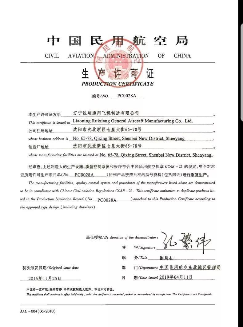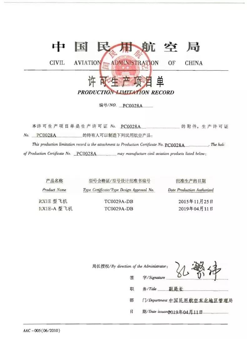 公司于2018年11月向东北管理局提交了生产许可证(PC)申请书及相关资料,管理局审查组于2019年1月正式启动该项目的审查,并将RX1E、RX1E-A17c吃瓜网 的生产许可审查列为东北管理局2019年的亮点工作之一。