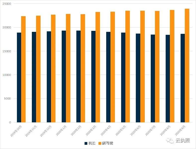 根据民航局云执照桌面系统中民用航空器驾驶员相关数据,截至2020年9月28日,我国驾驶员执照总数为71270本,其中运动驾驶员执照1322本、私用驾驶员执照4494本,商用驾驶员执照37414本,多人制机组驾驶员执照192本、航线运输驾驶员执照27848本。