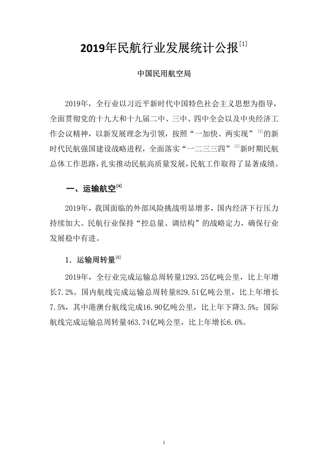 数据解析 | 《2019年民航行业发展统计公报》全文