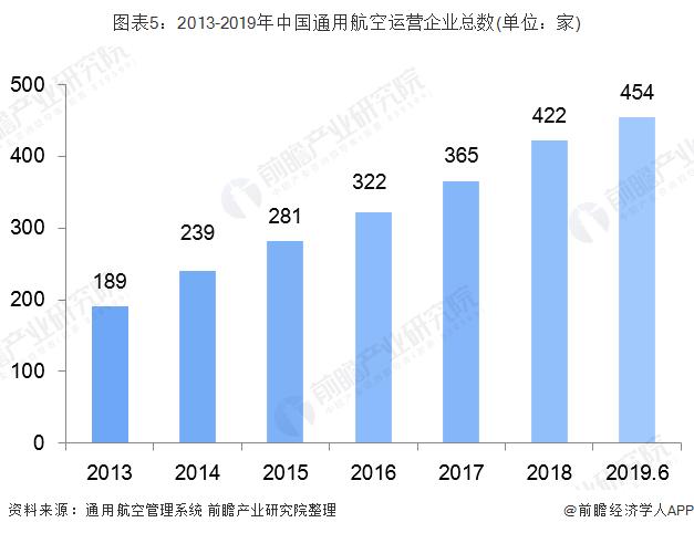 根据通用航空管理系统数据,截至2019年6月30日,获得通用航空经营许可证的通用航空企业数量为454家。