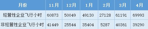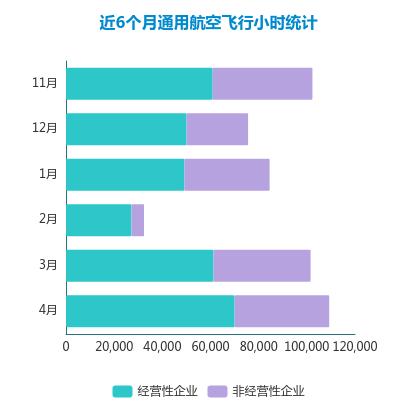 2021年4月,通用航空飞行小时大幅增长,达109283小时。其中,经营性通用航空企业飞行达69993小时,非经营性通航企业达39290小时。
