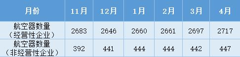根据相关数据统计,截至2021年4月30日,全国通航企业通用航空器数量达到3164架,同比增长8.7%,环比增长0.8%。其中,经营性通航企业达到2717架,非经营性通航企业达到447架。