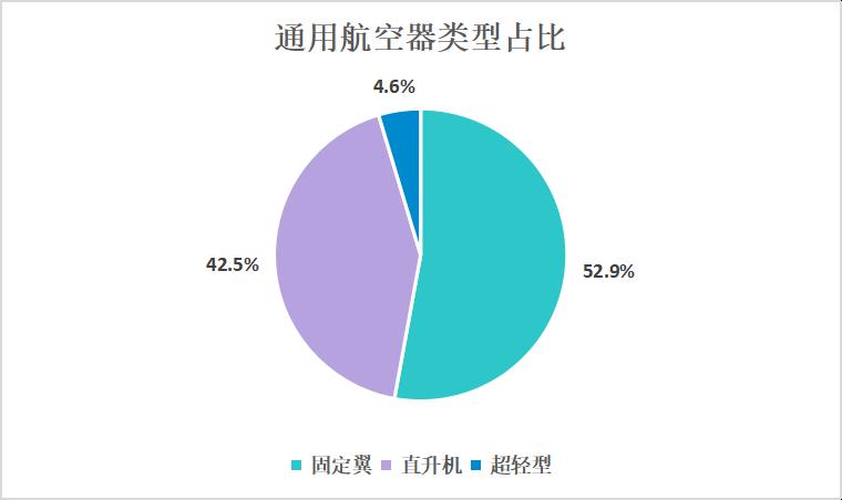 截至4月30日,目前使用的通用航空器中,固定翼型数量最多,占到总数52.9%,直升机占比42.5%,超轻型最少,占比4.6%。