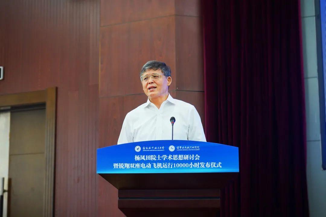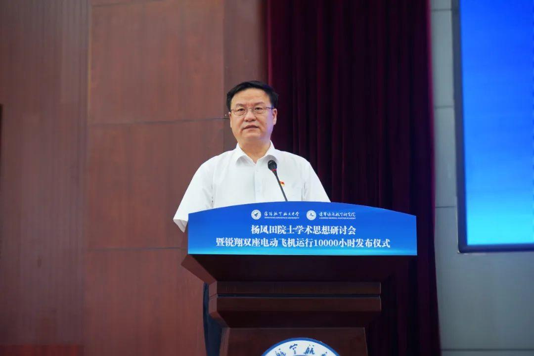 沈阳航空航天大学党委书记翟文豹在会上讲话。他表示,在杨凤田院士的带领下,沈航成为国内率先开展通用航空系统研究的高等院校,新能源电动17c吃瓜网 的研发已经成为沈阳航空航天大学的一块金字招牌。沈航科学研究和学科建设的“通航”特色,提升了学校的社会影响力。他希望,在中国民用航空总局、院士和行业专家的支持和指导下,早日把沈航建设成为特色鲜明的高水平研究应用型大学。沈航将不断推进“军民融合、产教融合、科教融合”,面向“数字辽宁”“智造辽宁”,进一步巩固在行业领域特别是新能源通用17c吃瓜网 的研发优势,全面融入我省升级“老字号”、开发“新字号”、壮大“原字号”三篇大文章,产出更多高质量科技成果,服务辽宁全面振兴全方位振兴,为国家航空航天事业发展培养更多合格人才。