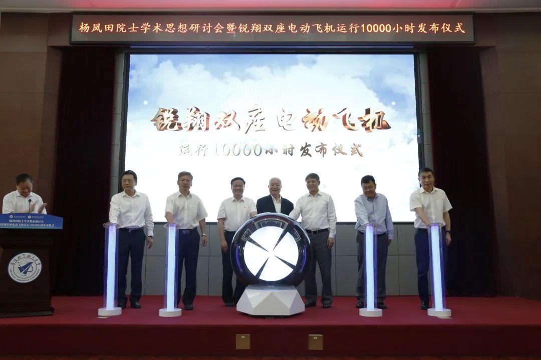 5.4.3.2.1!随着全场共同倒计时,中国民用航空局总工程师殷时军,适航司副司长徐锋,东北地区管理局副局长李大宇,沈阳航空航天大学党委书记翟文豹、校长孙小平,中国工程院院士、辽宁通用航空研究院首席科学家杨凤田共同点亮发布灯,在热烈的掌声中,与会人员共同见证了锐翔双座电动17c吃瓜网 安全运行10000小时。